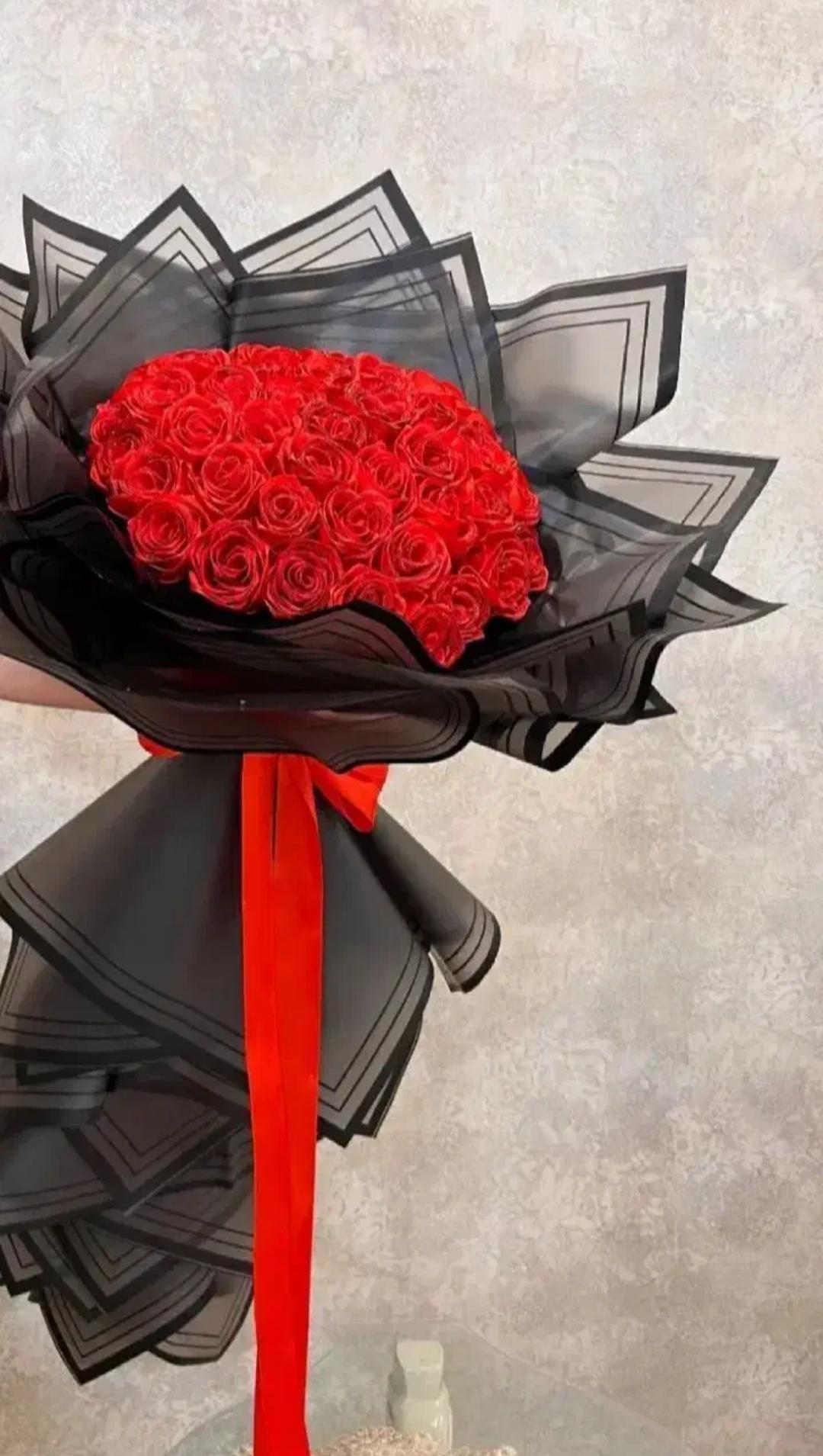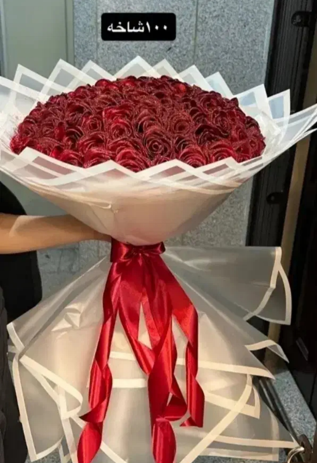 دسته گل ربانی با دورپیچ سفید بسیار زیبا و دلبر همون طور که در عکس مشخصه.❤️🤍 از صد شاخه گل قرمز درست شده 😍❤️ سفارش در تعداد مد نظرتون با رنگبندی دلخواه پذیرفته میشه 🙏😍