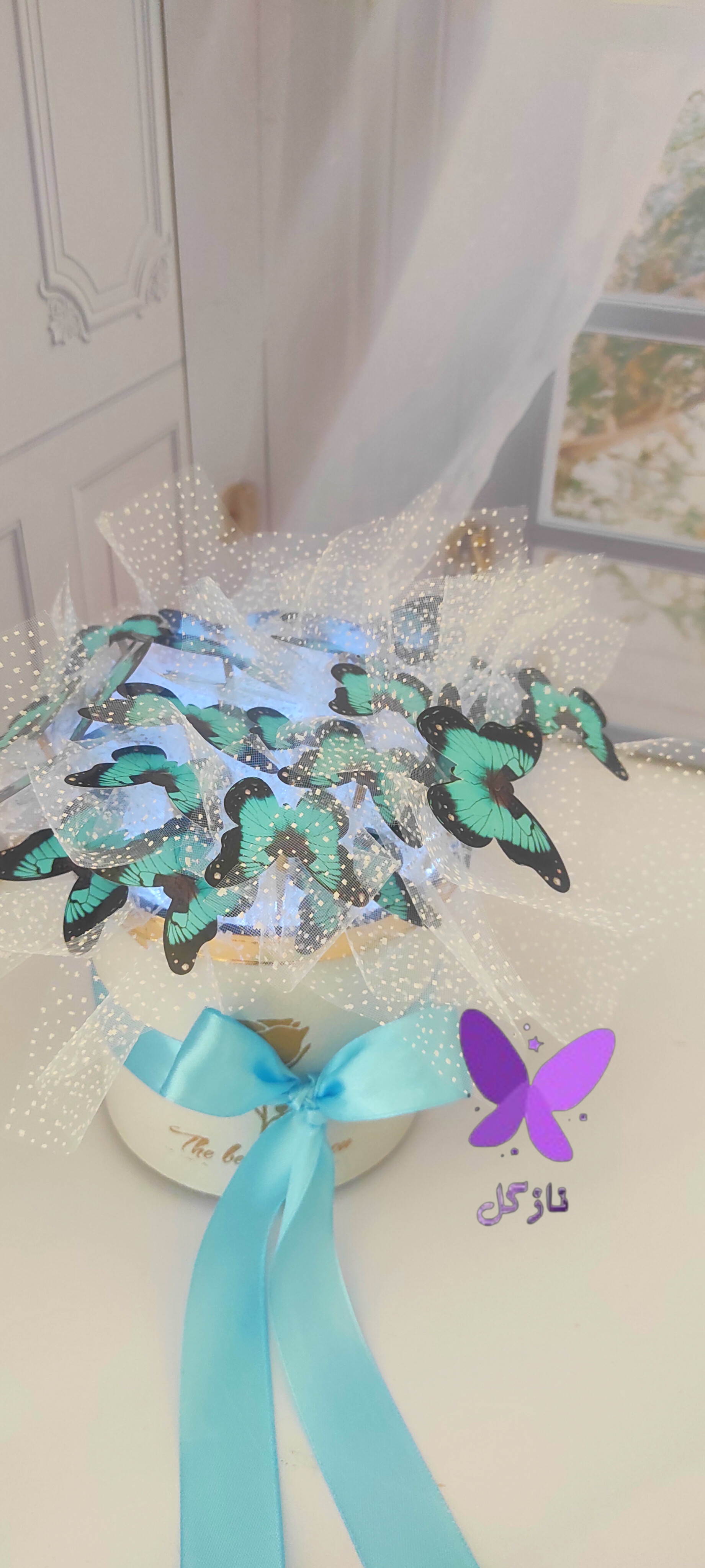 وقتی نهایت جذابیت و کیوت بودن یه هدیه باشه ، میشه باکس پروانه ای.!😍🦋 به قدری قشنگه که از دیدنش سیر نمیشم خیلی جذابه با ریسه نوری که داخلش کار شده شبا انقد میدرخشه که میتونی بذاری کنار تختت به عنوان چراغ خواب !🌌✨ ی باکس با کیفیت هم داره که حسابی کارو دلبر کرده.❤️🔥 20 شاخه پروانه ای داخل باکس هستش که به درخواست شما حتی میتونیم تا 100 شاخه ای هم آماده کنیم.💪 خلاصه که اگه میخوای هدیه بدی این یه گزینه ی محشره !🫂 برای ثبت سفارشتون میتونید در چت پیام بدید .صبورانه و مشتاقانه منتظر سفارشای قشنگتون هستم 🌷
