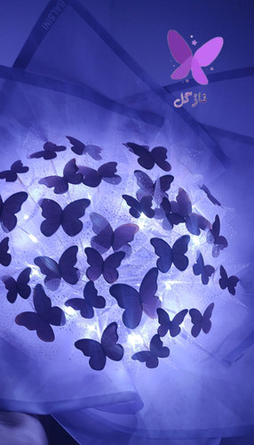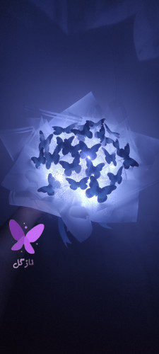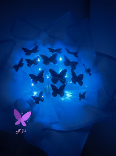 دسته گل پروانه ای آبی ۱۵ شاخه با ریسه نوری افکتدار