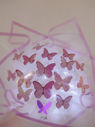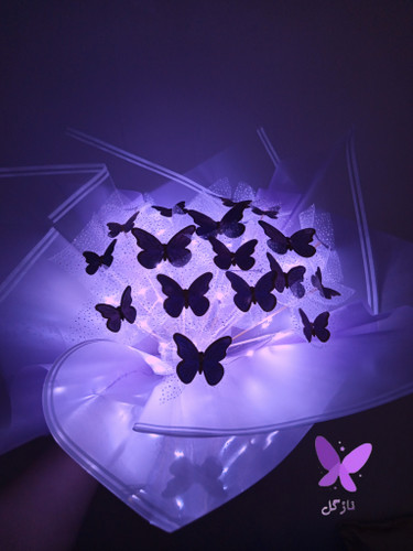 دسته گل پروانه ای 15 شاخه بنفش با ریسه نوری